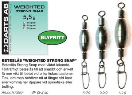 Förträffligt beteslås till att snabbt och enkelt få mer vikt till betet vid olika fiskesituationer. T.ex. om man behöver nå ut längre vid kast eller komma ner djupare vid spinnfiske eller trolling.