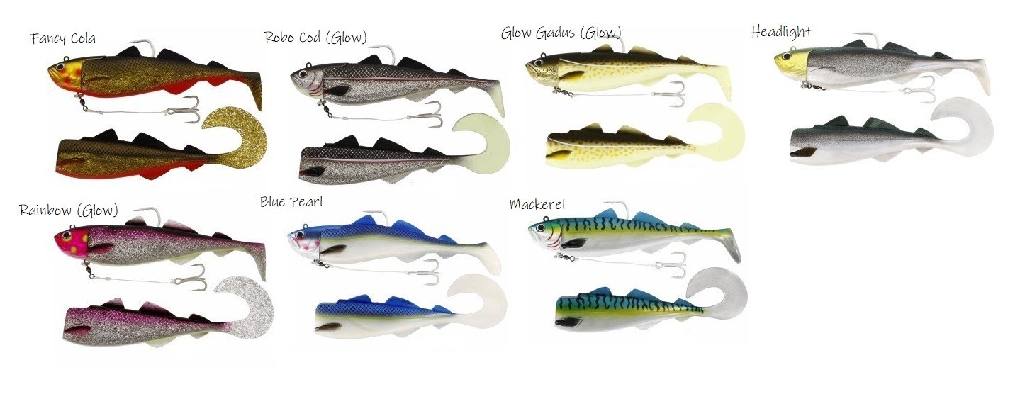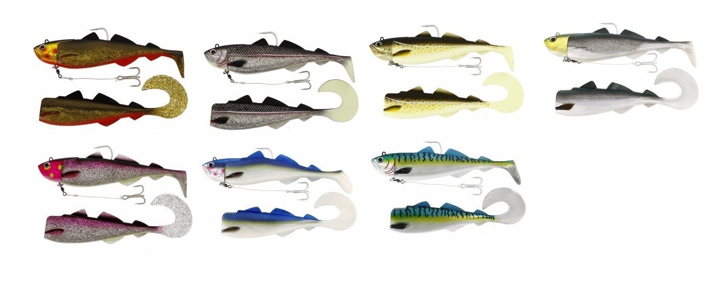 I förpackningen inkluderas två olika kroppar: en med curltail för en lugn, slingrande simrörelse även i låg fart och en med paddeltail som jobbar hårdare och sänder ut massor av lockande vibrationer i djupet. Ibland fiskar den ena svanstypen bättre än den andra.så glöm inte att testa båda varianterna under fisket.