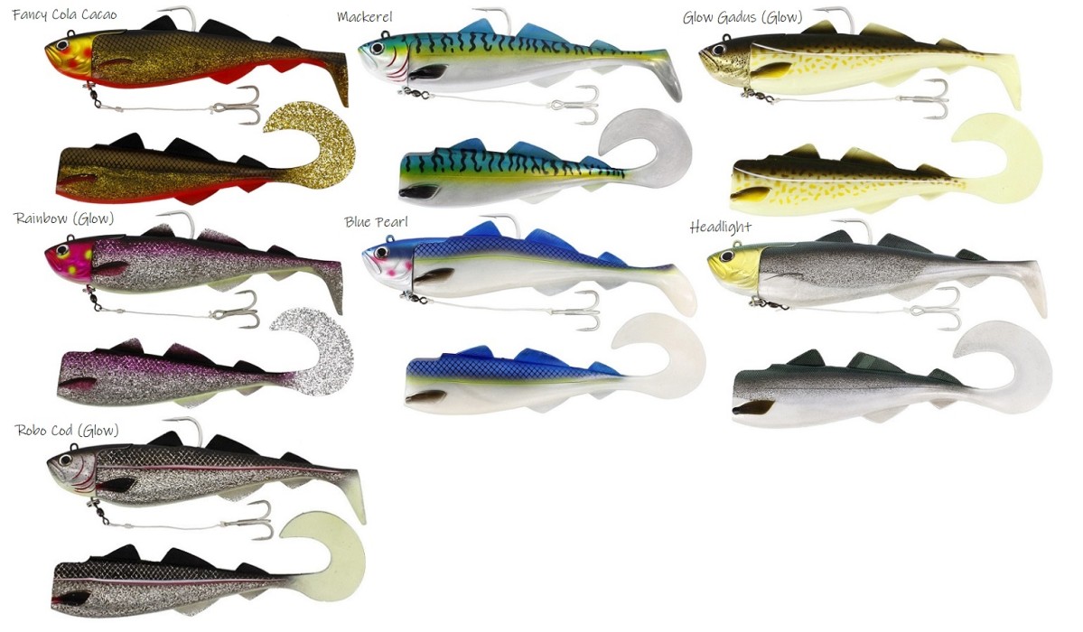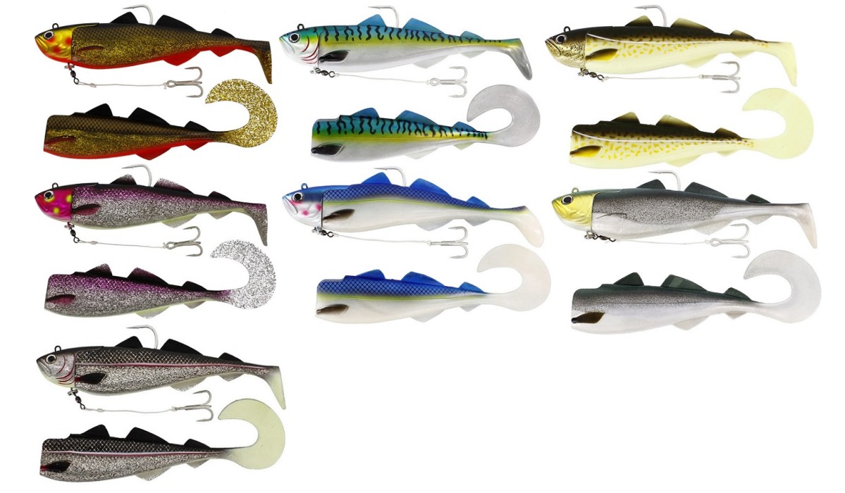 I förpackningen inkluderas två olika kroppar: en med curltail för en lugn, slingrande simrörelse även i låg fart och en med paddeltail som jobbar hårdare och sänder ut massor av lockande vibrationer i djupet. Ibland fiskar den ena svanstypen bättre än den andra.så glöm inte att testa båda varianterna under fisket.