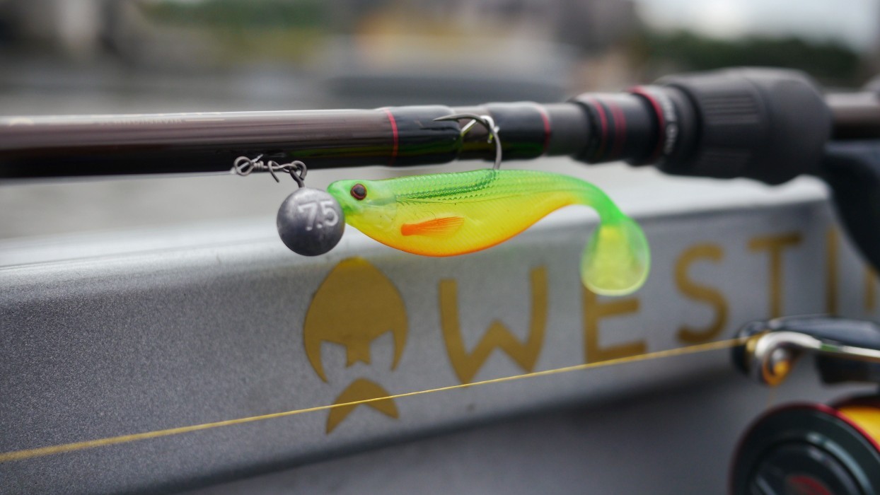 Westin Round up jigghuvud är en jiggskalle utrustad med sylvass mustadkrok.