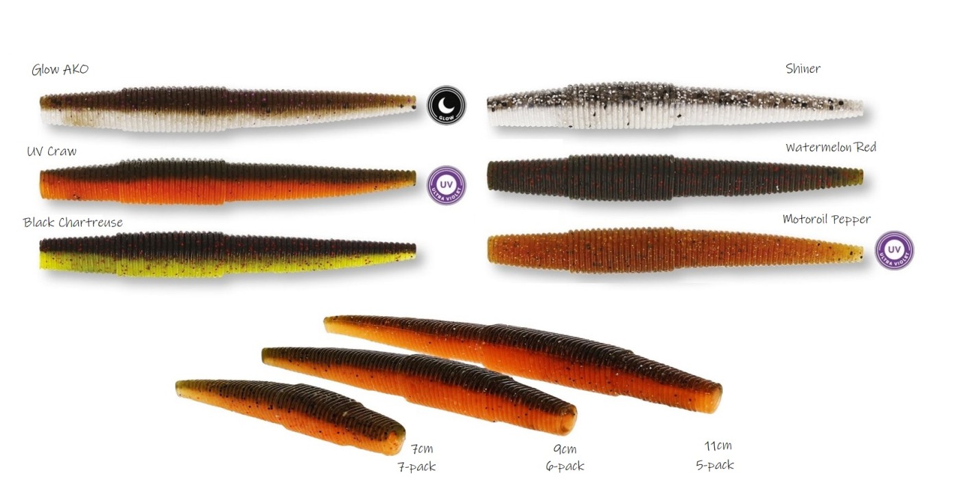 Westins Ned Worm är tillverkade av superelastisk, flytande och mycket tåligt TPR-gummi. Dess taperade kropp i kombination med det mjuka, flytande materialet ger enastående egenskaper. Med försiktiga skak och hopp är det få abborrar som kan låta bli.