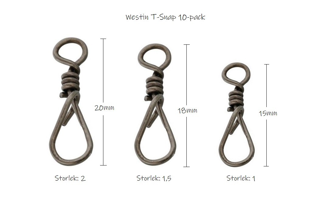 T-snap gör det mycket enkelt att aptera beten till din tafs. Du behöver inte öppna ett lås som ett vanligt beteslås, här vrider du betet på plats - mycket enkelt och säkert. Perfekt till jiggaskaller där det ibland kan vara svårt att fästa en traditionll beteshake