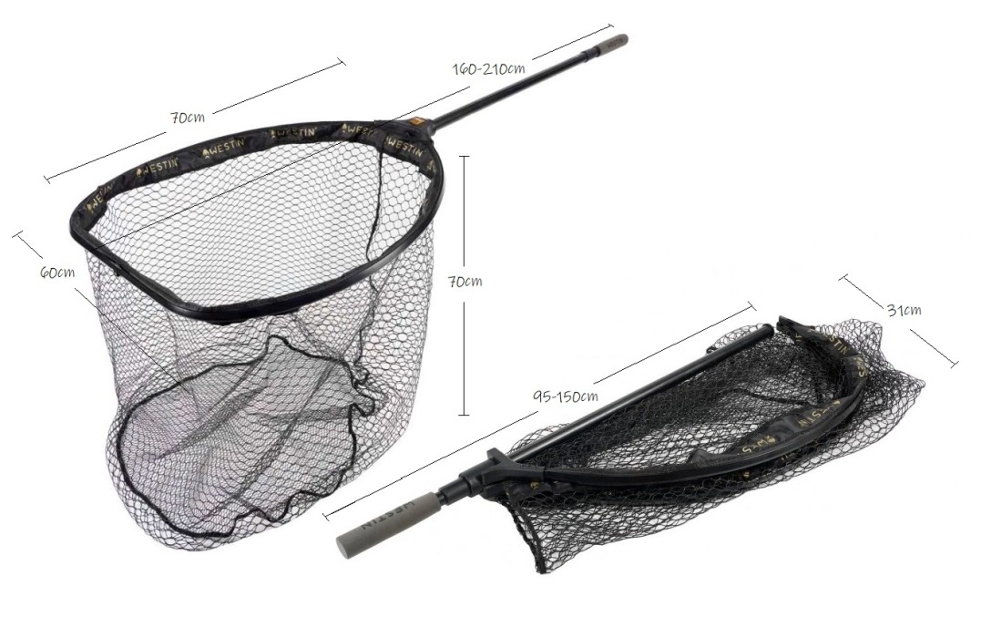 Gummerat nät gör att krokar ej fastnar och är mer skonsam mot fiskens slemskikt. Vikbar konstruktion gör att håven tar mindre plats vid transport. Håvnätet har flat botten och är 70cm djup. Handtaget låser man genom att vrida, det går även att förlänga upp till 150cm.