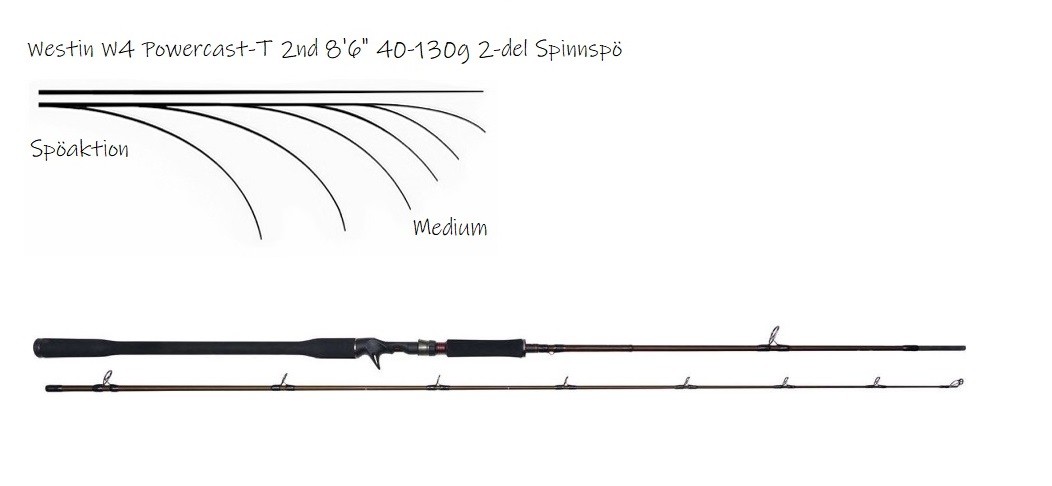 Aktionen och egenskaperna hos W4 Powercast-T 2nd Generation är noga anpassade för att tillfredsställa kraven från skandinaviska predatorexperter. Spöna är designade för multirullar; för spinnfiske med hård- och mjukbeten, spinnerbaits och även betesfisk för stor gädda. Spöna är extremt mångsidiga och är byggda med den finaste japanska kolfibern från Torayca®, genuina spigot-holkar och toppkomponenter i form av ringar och rullfästen från SeaGuide® och Fuji®.