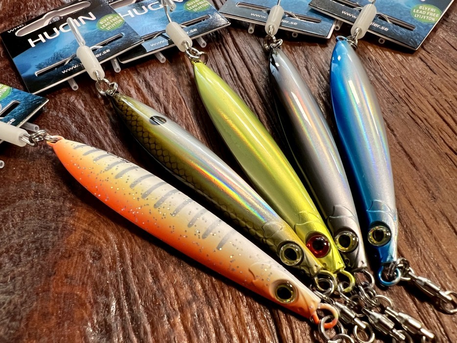 Wiggler Hugin är en kastpilk som är vriden 74 grader från ögla till ögla, vilket gör att den snurrar förföriskt i vattnet. Den väger 30 gr, helt blyfri och är 8,5 cm lång exklusive krok och öglor. Hugin har en hög finish med fjällstruktur på ena sidan och en slät andra sida, samt realistiska ögon. Denna kastpilk är designad för havsfisket efter torsk, sej, makrill & havsöring. Ett perfekt kustbete som kastar långt och fiskar bra!