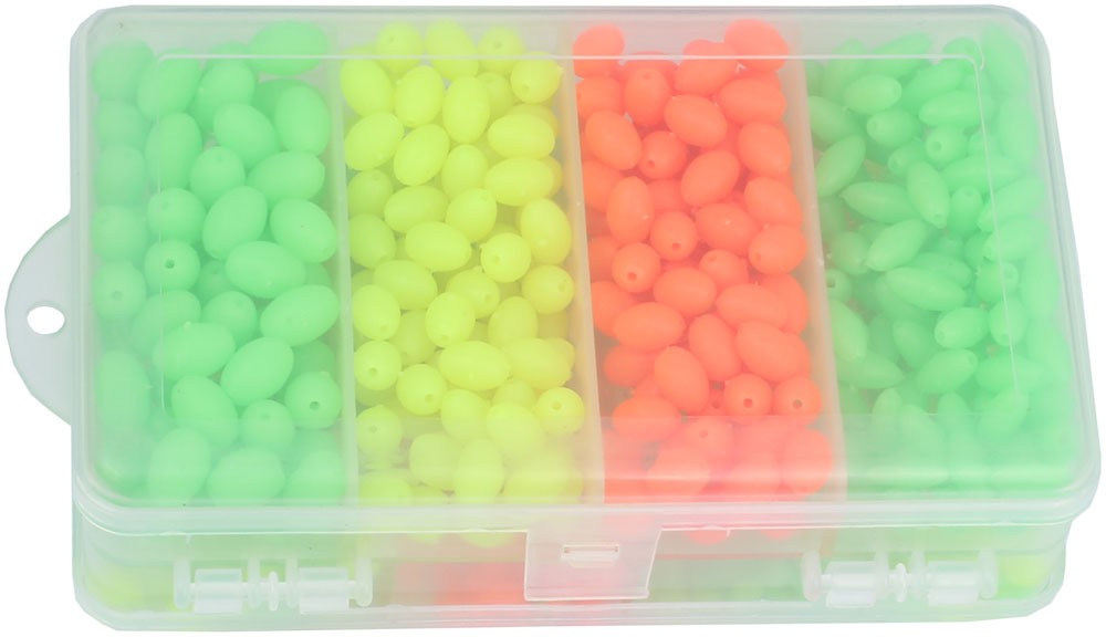 Mjuka självlysande pärlor i fyra olika färger och i olika storlekar, 4-12 mm